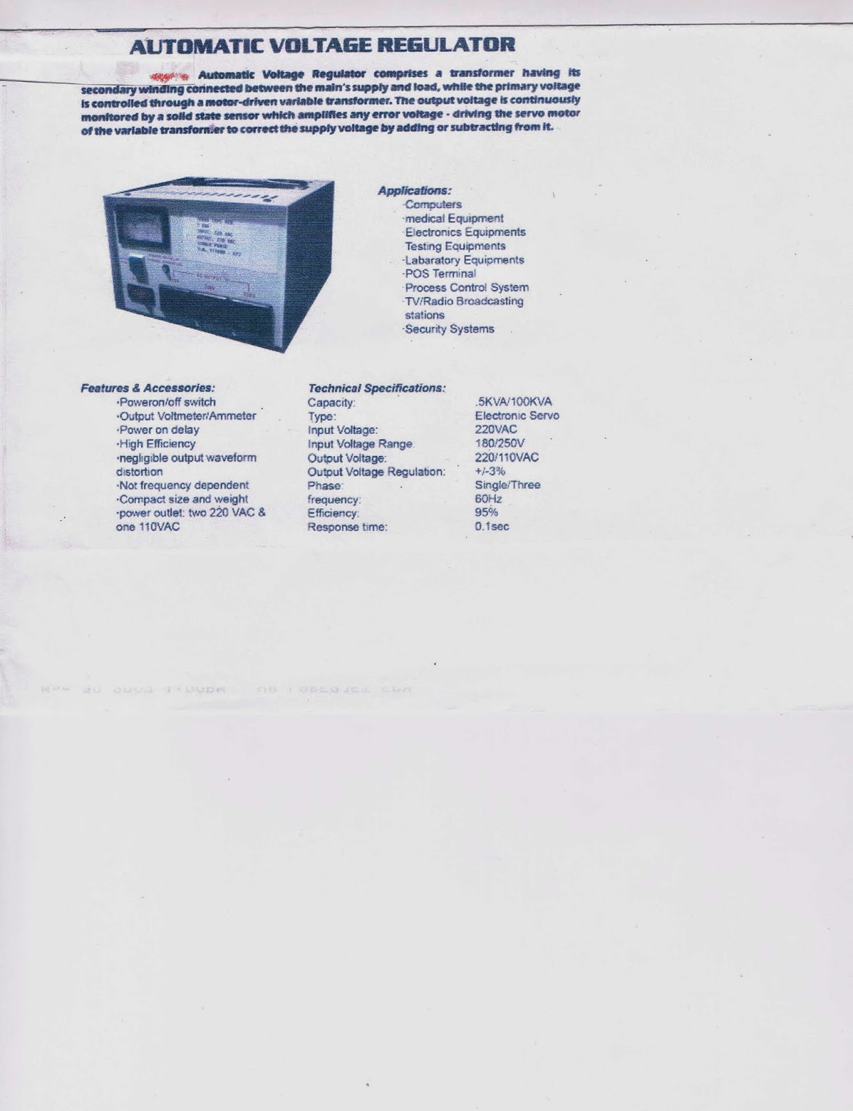 AUTOMATIC VOLTAGE REGULATOR AVR SERVO TYPE SINGLE PHASE / THREE PHASE